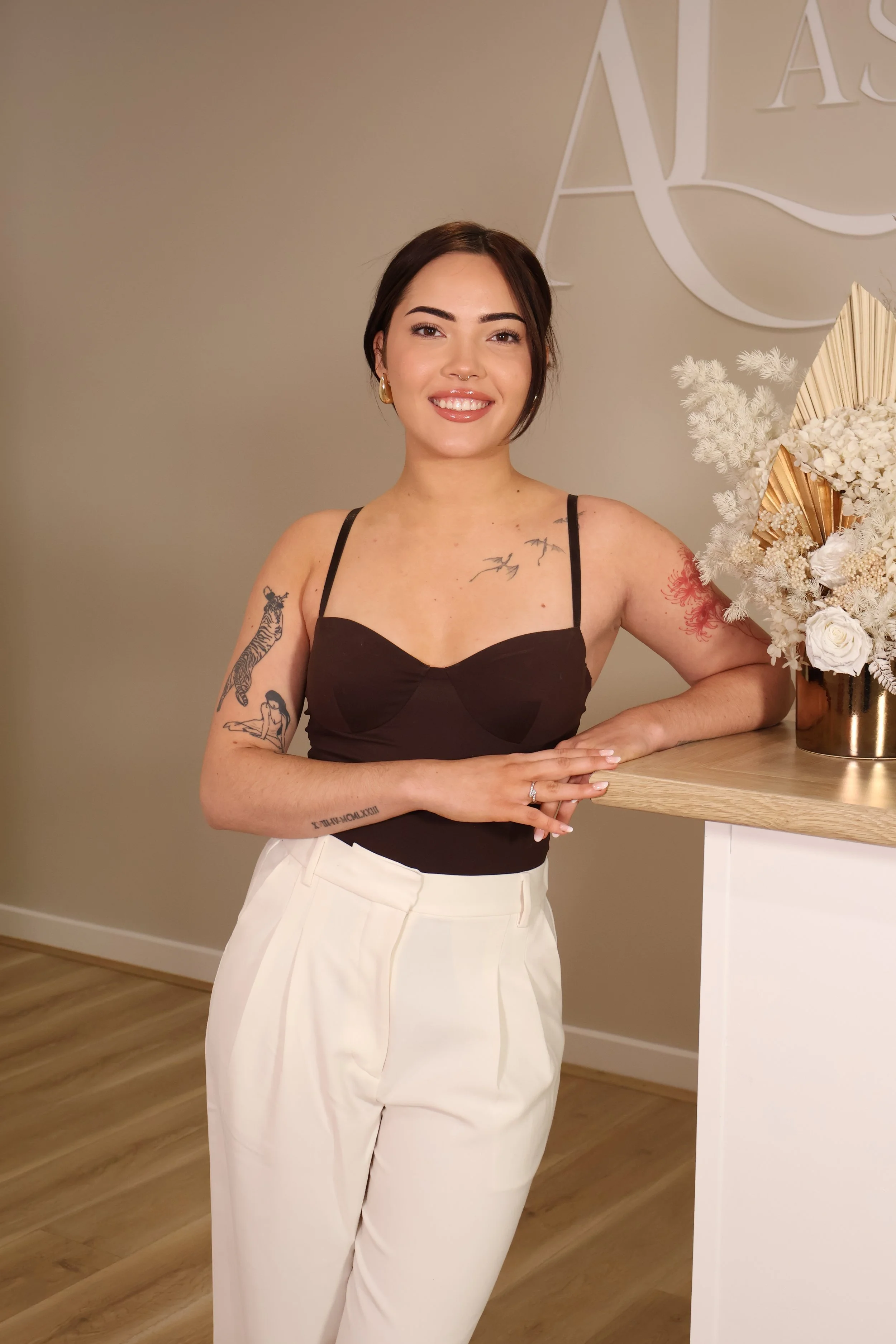 Since joining Ashlee Laura Artistry, Isabella has upskilled extensively as both an artist and therapist. She offers ombré brow tattooing, nano combination brows, lip blush, dark lip neutralisation, laser tattoo removal, brow styling, and lash lifts. Her work reflects the studio’s commitment to soft, natural, and well-balanced results.